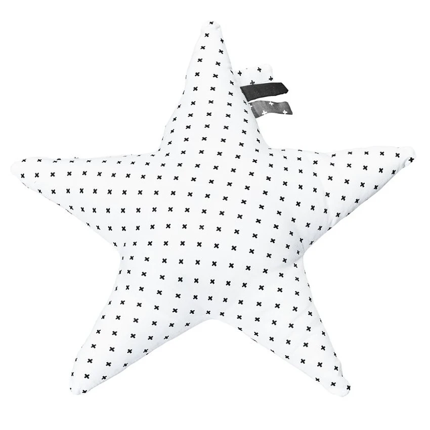 Coussin décoratif en forme d’étoile en popeline imprimée.