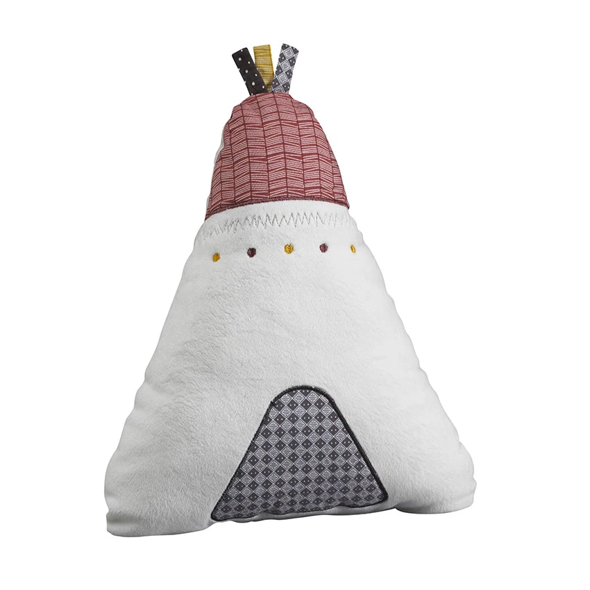 Le coussin tipi Timouki porte bien son nom. Il représente un tipi dont les perches en bois sont remplacées par du tissu très doux.