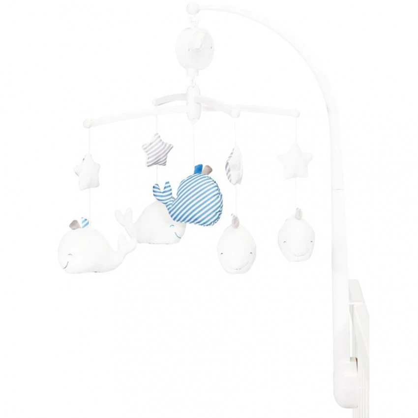 Le mobile Sauthon Blue Baleine est destiné à stimuler l’ouïe et à éveiller bébé avec ses baleines suspendues.