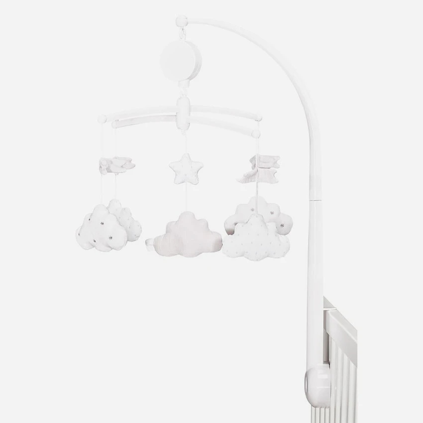 Le mobile Sauthon Lily Grey est destiné à stimuler l’ouïe et à éveiller bébé avec ses nuages suspendus.