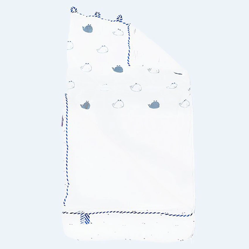 Pour accompagner bébé dès la sortie de la maternité, Sauthon a imaginé ce nid d’ange Blue baleine dans un univers en blanc et bleu où une baleine et ses baleineaux semblent nager à travers les flots.