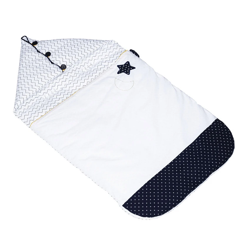 Pour accompagner bébé dès la sortie de la maternité, Sauthon a imaginé ce nid d’ange Hello dans un univers graphique bicolore agrémenté d’une touche de jaune qui réveille l’ensemble.