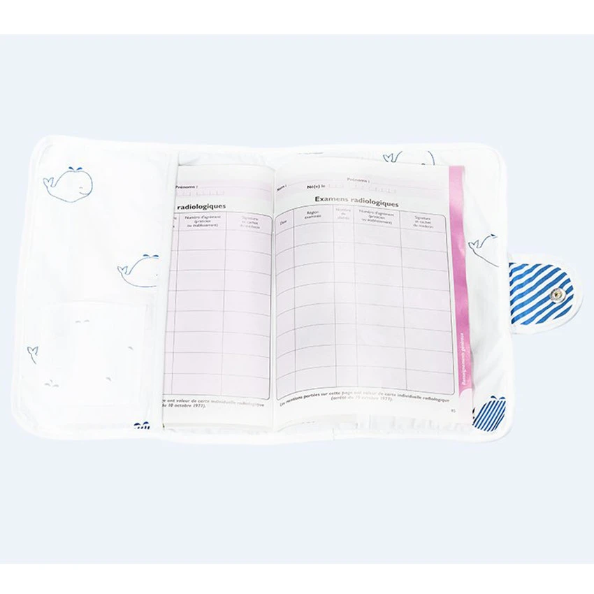 Elégant et sobre, le protège carnet de santé Blue Baleine permettra de ranger le carnet de santé et les papiers médicaux de votre enfant.