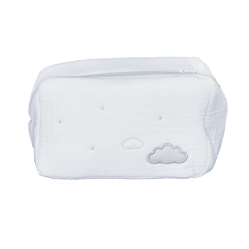 Assortie à la gamme Lily Grey et décorée d’une application en forme de nuage, cette trousse en mousseline de coton gaufrée est idéale pour y glisser l’essentiel pour la toilette et les soins de bébé lors de vos déplacements.